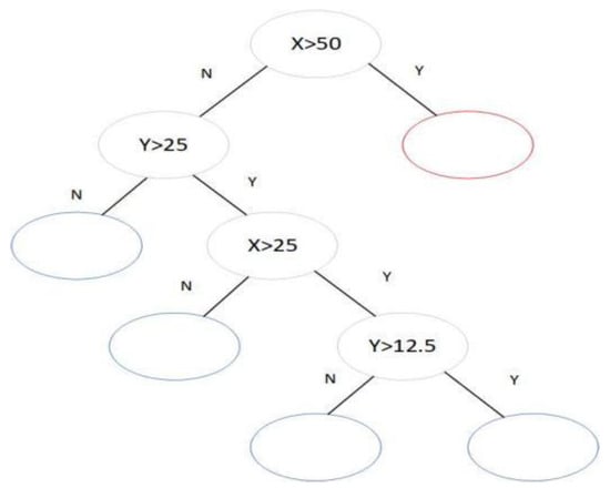 The Isolated Forest algorithm provides an important method for data pre-processing by using algorithms to find data that are different from other data patterns. It can perform unsupervised learning outlier detection on large amounts of continuous data, and while it is not applicable for high-dimensional data, it has a wide range of applications. For example, Nair et al., (2022) [17] performed outlier detection on data and assessed the stability of the filling process of human-induced multifunctional stem-cell products, Liu et al., (2022) [18] used Isolated Forest as a method for surface water quality anomaly detection, while Lin et al., (2020) [19] combined Isolated Forest with neural network models for effective wind-power prediction. Similarly, Ahmed et al., (2019) [20] employed the principle of the Isolated Forest algorithm, i.e., constructing the shortest mean path length to identify erroneous data in grid data and reduce system losses. There are also many scholars who have improved the Isolated Forest algorithm: Barbariol et al., (2022) [21] developed the TiWS-iForest model using weak supervision, which reduced the complexity of Isolated Forest improved its detection performance. To solve the problem of finding abnormal data in a device, Jiang et al., (2022) [22] detected abnormal values in lithium battery data based on the Isolated Forest algorithm, which was effectively applied to the fault diagnosis of powered lithium batteries; Wang et al., (2021) [23] used Isolated Forest for monitoring the status of marine diesel engines for fault detection. As the sample points need to be segmented several times, at which point they are relatively clustered, the more isolated points will be segmented out of class after several segmentations. These isolated points are the outliers for which we are looking. A demonstration of the segmentation of data points in a two-dimensional plane is shown in Figure 2.