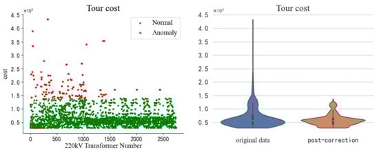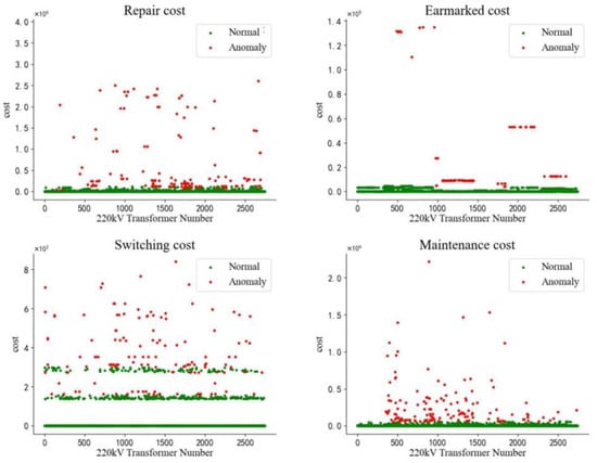 Tour cost, switching cost, repair cost, and earmarked cost were analyzed in the same steps using Isolated Forest; the results of the outlier screening are shown in Figure 6 below.