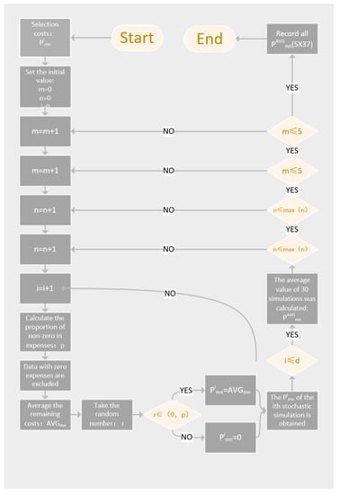 When is used, indicates the tour cost incurred during the third year of operation of the second equipment in the sample set, and the other costs are expressed in the same sense. In our study, the results of the stochastic simulations were compared with the results of the traditional calculation method to obtain the best study solution, which follows the algorithm shown in studies [11,12] for the calculation of LCC.