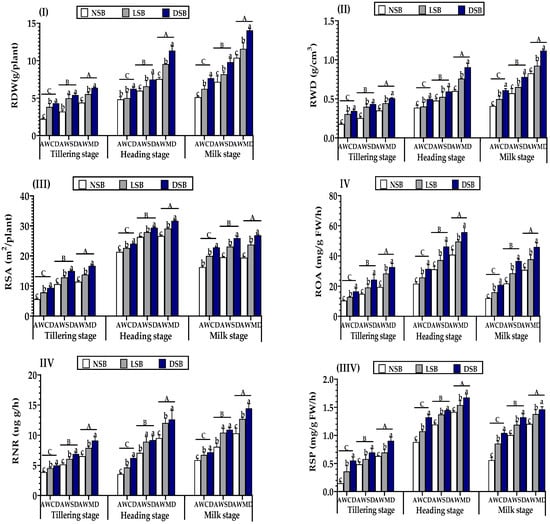 | AWSD | NSB | 418.3 ± 14.54 Bb | 160.7 ± 6.3 Ba | 579.0 ± 8.60 Ba | 13 ± 0.48 Ba |