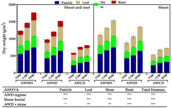 - Yang, C.; Yang, L.; Yang, Y.; Ouyang, Z. Rice root growth and nutrient uptake as influenced by organic manure in continuously and alternately flooded paddy soils. Agric. Water Manag. 2004, 70, 67–81. [Google Scholar] [CrossRef]