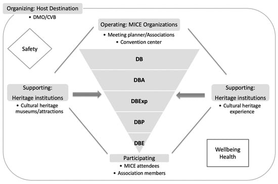 To increase the generalizability of the findings for CMDBM and to be employed in post-pandemic times, this study suggests that safety and wellbeing concerns should be incorporated into the model. These issues are receiving cursory attention in the revival discourses across the globe. To prepare for the post-pandemic era, destinations will need to pay more attention to the long-term wellbeing and resilience of travelers, local communities and the tourism system as a whole []. As health and safety issues become intertwined with economics, future tourism plans and destination branding will need to embrace concepts such as economics of health, safety, wellbeing and happiness []. New stakeholders, including health and safety-related fields, are needed in the portfolio. To build co-created synergies between MICE and heritage tourism while taking into consideration the health and wellbeing aspects of travel, the new destination branding paradigm at each stage will need to integrate local heritage assets. In the post-pandemic era, the suggested new version of the model will be employed while providing wellness and safety value to the MICE attendees to suggest a destination’s brand equity. Giannopoulos, Piha and Skourtis [] confirm the importance of stakeholders’ efforts to co-create sustainable brands in the global tourism by exploring the value-creating mechanisms of branding in the destination context. Paradigms and strategies for enhancing public health and wellbeing will add to resilient and sustainable rebranding efforts [].