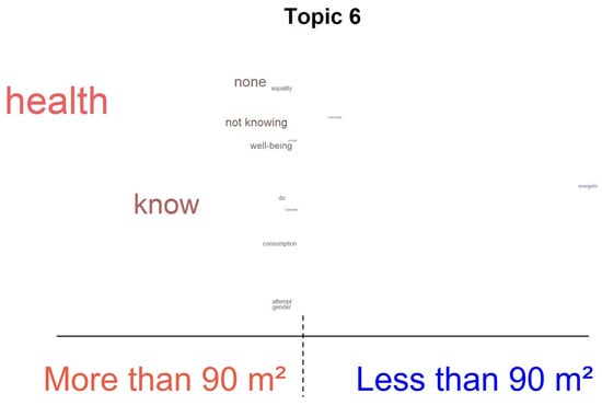 Significant differences were observed in the proportion of sentiments and emotions detected with the NRC dictionary in the question about how the residuals are removed from the center (p = 0.002 and 0.008, respectively) with a higher proportion of positive sentiments with emotions of joy, anticipation, confidence and surprise expressed by participants from clinics of less than 90 m2, while in those from clinics of more than 90 m2, negative feelings predominated with emotions of disgust, fear or sadness; in both cases, the effect size was large and significant. Significant differences were also observed in the polarity of the sentences in the answers to the question on the implementation of the Agenda 2030 measures (p = 0.047) with the expression of positive sentiments in the answers of the participants belonging to clinics of less than 90 m2 and negative in those of more than 90 m2, with a small and significant effect size (0.25 ± 0.46 vs. −0.04 ± 0.33) (significant values are shown in red) (Supplementary Material Table S3).