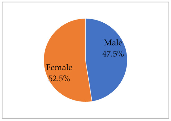Based on the results for 125 interviewees, the gender ratio was relatively equal—precisely 47.5% male and 52.5% female. The percentage of the gender of surveyed households is presented in Figure 2.
