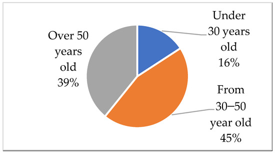 According to Figure 3, up to 45% of the respondents were between the ages of 30 and 50 because this was the age range when they had enough capacity to manage a business. In addition, they could learn to improve their skills to enhance tourism activities. This was followed by 39% who were over 50; the lowest percentage was those who were under 30 (16%).