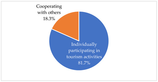 According to Figure 6, most households individually participated in tourism activities (81.7%), while the rest cooperated with other homes, but the rate was low (18.3%). Families that collaborated with other households made handicrafts for indirect tourism. Some households made row boats on a small scale, often associating with other households for transport when many tourists arrive.