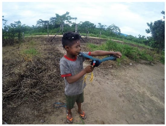 The day A (9 years old) proudly caught a bird with his slingshot to feed his family. Source: picture taken by I.A.-R. and shared with the permission of A and his parents.