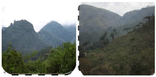 Photos of forest coverage in the study area normal forest (left) and degraded (right). (Source: Photo from field observation).