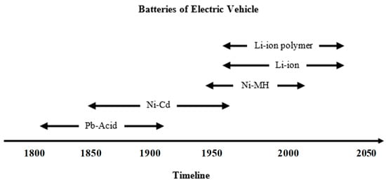 At present, Li-ion batteries are the most used batteries in EVs. The demand for Li-ion batteries will increase with an increase in BEV sales. A primary barrier for using BEVs is the driving range which is directly affected by the relatively low energy density of the batteries currently used in such vehicles [17]. In addition, the slow rate of charging has put BEVs at a disadvantage, since the driving range from one charging cycle is still lower than the expectations of manufacturers, and BEVs need the adaptation of fast charging processes [43]. EoL of batteries is a major concern, as most BEV batteries need replacement after 8 years or 160,000 km, which is not feasible as compared with ICE vehicles [44]. In the last decade, there have been significant improvements in EV battery technology, which has gone through a few development phases, notably in energy density, fast charging, EoL, cost-effectiveness, and safety. Figure 1 shows the timeline of EV battery development.