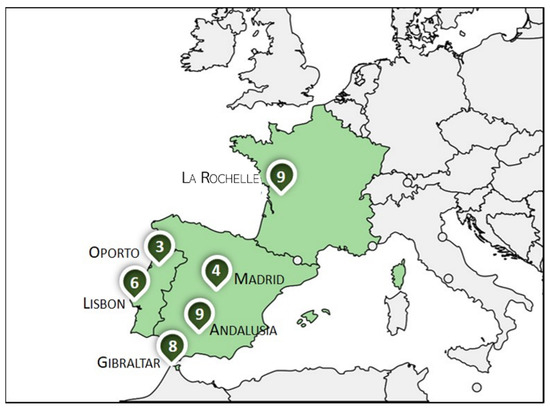 Geographic location of the studied schools in the southwestern European region.