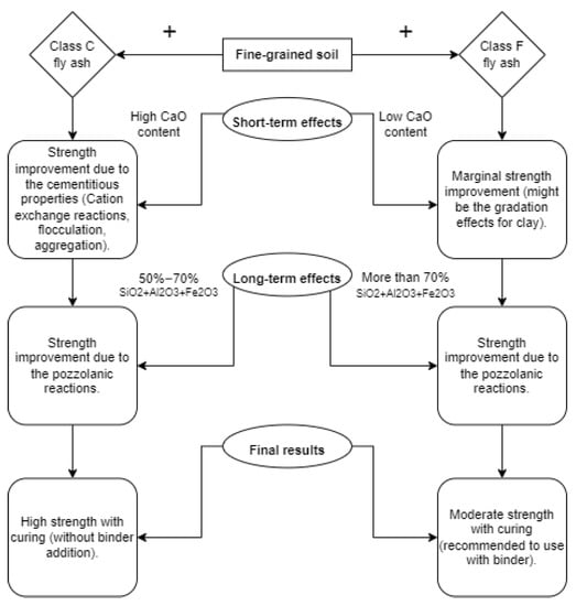 - Seyrek, E. Engineering behaviour of clay soils stabilized with class C and class F fly ashes. Sci. Eng. Compos. Mater. 2016, 25, 273–287. [Google Scholar] [CrossRef]