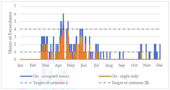| Criterion 1: | Percentage of occupied hours during which ∆T ≥ 1 K | <3% of occupied hours |