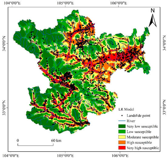 The landslide susceptibility map of the LR model.