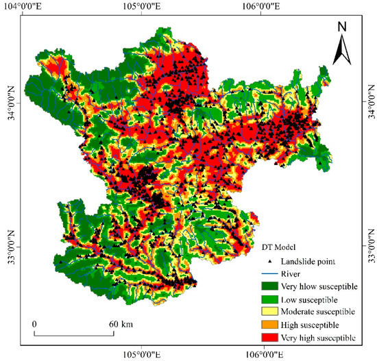 The landslide susceptibility map of the DT model.