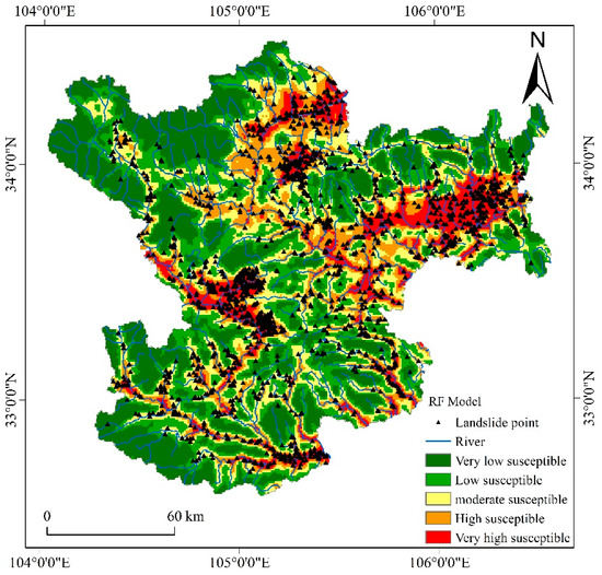 The landslide susceptibility map of the RF model.