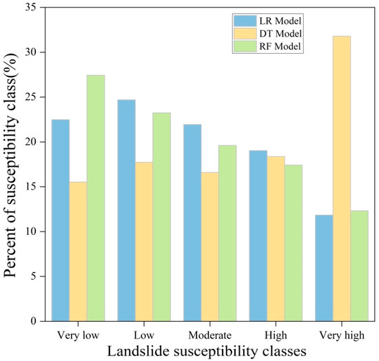 Area percentages of different landslide susceptibility classes.