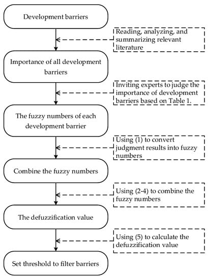 The Delphi technique was initially proposed by the RAND corporation [47]. Ishikawa et al. [48] applied fuzzy theory to the traditional Delphi technique to create the fuzzy Delphi technique. The fuzzy Delphi technique uses statistical analysis and fuzzy operations to transform subjective judgments of experts into quasi-objective data. Applying the fuzzy Delphi technique to filter factors takes the uncertainty and ambiguity of experts’ subjective judgments into account, thus effectively rejecting some low-impact factors in the system. At present, the fuzzy Delphi technique has been extensively promoted and applied in areas such as environmental protection [49], green supply chain management [50], tourism management [51], and freight transport [52].