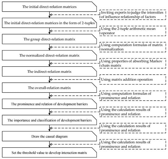 The realized steps of the improved DEMATEL method are summarized as follows (depicted in Figure 2):