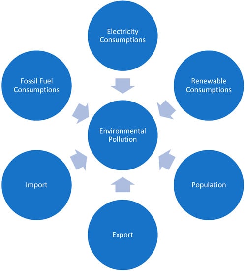 The world is faced with climate change and increases in global warming and carbon dioxide emissions. Therefore, leaders all over the world need to take action in order to reduce CO2 emissions in the atmosphere. The studies regarding increases in CO2 emissions and environmental pollution are carried out by scientists and policymakers. Aghasafari et al. studied the link between CO2 emissions, exports, and foreign direct investment. Their empirical evidence from the Middle East and the North Africa region showed that exports and FDI affect CO2 emissions [1]. Andersen et al. studied CO2 emissions from the transport of China’s exported goods. Their results showed that the transport of China’s goods increases CO2 emissions [2]. There is a research gap in studies about environmental pollution in Asian countries and how renewable consumption decreases CO2 emissions. This study focuses on the study of the relationships of electricity consumption, fossil fuel consumption, renewable consumption, the import and export of goods and services, and population with environmental pollution in 15 Asian countries. These countries are China, Hong Kong, India, Indonesia, Israel, Japan, South Korea, Malaysia, Pakistan, Philippines, Qatar, Saudi Arabia, Singapore, Thailand, and Vietnam.