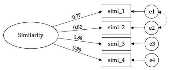 Initially, the factorability of the four items was examined. The four items of the Similarity scale were subjected to an EFA with varimax rotation. The maximum likelihood factor analysis with a 0.40 cut-off point and Kaiser’s criterion of eigenvalues greater than 1 yielded a one-factor solution, not rotated, as the best fit for the data, accounting for 79.72% of the total variance explained.