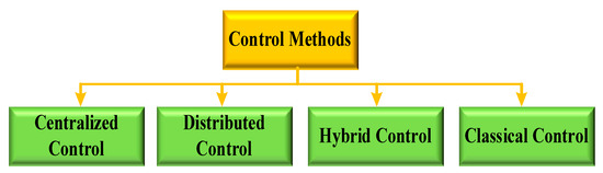 Other techniques for regulating HRESs include centralized control [170], distributed control [171], hybrid control [172], and classical control methods (Figure 10), like proportional–integral control [173] and Rule-Based Control (RBC) [174]. Intelligent methods, such as MO-PSO [175], fuzzy logic controller [176], Adaptive Neuro-Fuzzy Inference System (ANFIS) [177], and neural network algorithm [178] are examples of classical approaches.