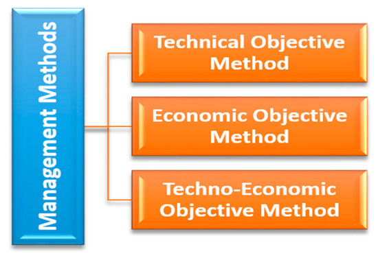 Hybrid system management enables excellent system performance and accuracy at the lowest cost to provide year-round system supply [159]. Hybridization in energy management of HRESs produces a rise in element lifespan, a decrease in economic parameters (global, levelized costs, etc.), and, as a consequence, maximizes system reliability (Figure 12) [179]. The main characteristics of the management techniques of the HRESs are described in Table 6 [180]. Due to objective strategy (Figure 13) [179], management approaches are divided into three types, shown in Figure 13.