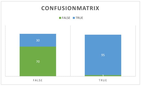 Presented the column views with label data of the confusion matrix. (The green color describes a positive class with a true label, while the blue color describes the negative class with a false label).