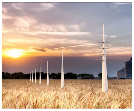 Rendered Wind turbine blade utility transmission poles to be constructed in Kansas, USA [], Photo credit: Re-Wind Network [].