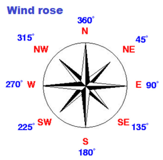 The last, sixth factor is the slope aspect determined according to the main directions of eight ranges expressed in degrees (Figure 4), and the distribution of weights is shown in Table 7, below.