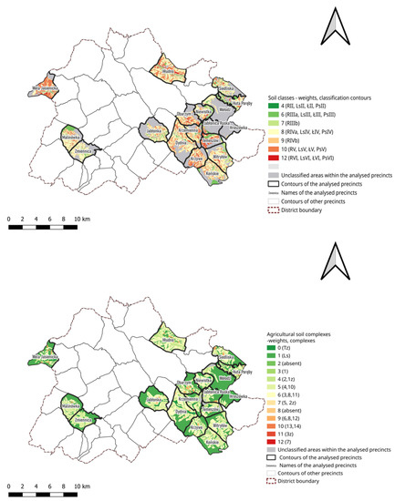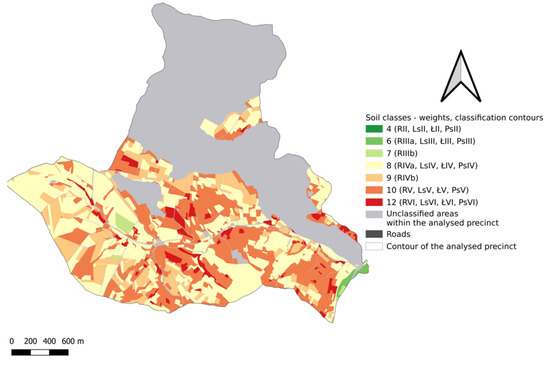 Considering the productivity of these soils, as implied by their names, they were ordered from the best to the weakest [52]. Table 2 presents their detailed division and the weights assigned to them.