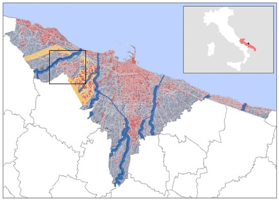 - Comune di Bari, Documento Programmatico Preliminare per il Piano Urbanistico Generale—Relazione Generale, 2010 (Preliminary Programmatic Document (DPP) for the PUG—General Report). Available online: https://www.comune.bari.it/web/edilizia-e-territorio/relazione-generale (accessed on 15 July 2022).