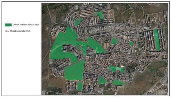 In the San Paolo case, interesting potential to introduce resilience assessments and sustainable storm water management in urban planning may also be found in the regeneration of several derelict areas within the neighborhood, where public service facilities should have been built according to the plan. Through the use of NBS, the development of those areas may provide at the same time public services and several ecosystem services connected to water and energy saving, hydrogeological and ecological protection, and recreation. Thus, the undeveloped and semi-natural areas within the San Paolo neighborhood, that at present do not have a precise use and are mostly derelict (Figure 10), represent a great opportunity for ecosystem services. At the same time, they would also serve as an ecological network across the settlement.