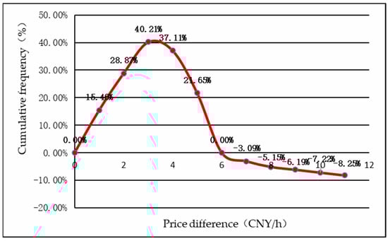 From the previous data analysis, it is clear that if there is an 80% probability that a parking space will be rented out successfully compared to the maximum rental price, the owner will choose to lower the price to obtain a profit. Therefore, the concavity of the value function can be examined based on the trend of the cumulative distribution curve of the owner’s change in rental price. Although the cumulative distribution curve of the owner’s rental price change is not exactly the same as the value function curve, the probability of the owner’s rental price change can be deduced from the value function. The cumulative distribution curve of the owner’s change from the desired maximum rental price to the price that has an 80% probability of guaranteeing successful rental of the space is shown in Figure 10.
