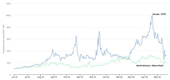 - IEA Evolution of Key Regional Natural Gas Prices, June 2021–October 2022. Available online: https://www.iea.org/topics/global-energy-crisis (accessed on 27 October 2022).