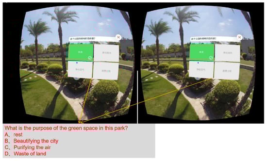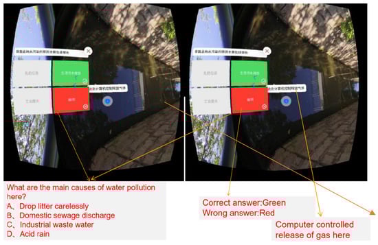 In the multisensory SV-IVR learning module, students use their cell phones and Google Cardboard for SV-IVR learning. Students enter the virtual world and immerse themselves in the natural landscape environment according to the teaching schedule set by the teacher. They can learn in a virtual environment and complete the questions set by the teacher, as well as the knowledge test in the system, as shown in Figure 3.