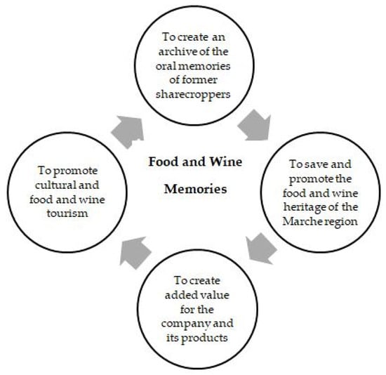 The “Marche Food and Wine Memories” project has four related objectives (Figure 2):