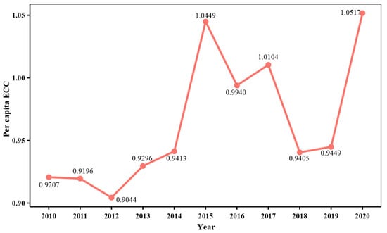 Per capita ECC in Gansu province from 2010 to 2020.