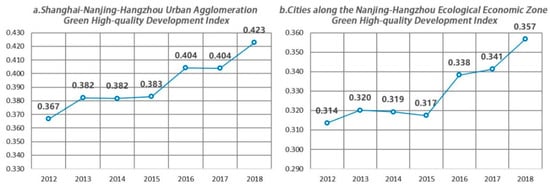The green and high-quality development index of Shanghai-Nanjing and Hangzhou-Golden Triangle urban agglomeration.