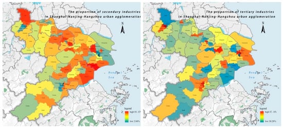 The spatial distribution of proportion of secondary and tertiary industry.