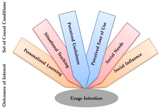 Finally, looking at the empirical research on the user intent of educational technology, we can find that most of the analysis methods use the SEM (structural equation model). No research has been found in which SEM and fsQCA (fuzzy-set qualitative comparative analysis) methods are combined. Many factors influence the willingness to use [9]. FsQCA is mainly adopted to explain possible configurations in complex causal relationships [24]. In this context, the following questions are brought out in this study: