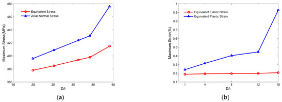 (a) The MES and the MAS versus D/t and (b) the elastic strain and the plastic strain versus D/t.