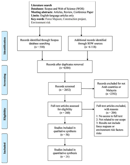 Chicago/Turabian StyleAlfadil, Mohammad Omar, Mukhtar A. Kassem, Kherun Nita Ali, and Wael Alaghbari. 2022. "Construction Industry from Perspective of Force Majeure and Environmental Risk Compared to the COVID-19 Outbreak: A Systematic Literature Review" Sustainability 14, no. 3: 1135. https://doi.org/10.3390/su14031135