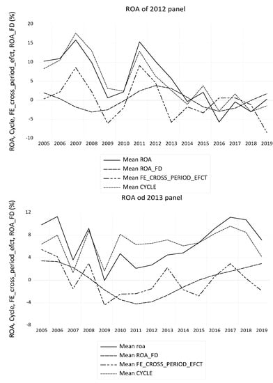 A limitation of the ROA is that it can vary substantially from one industry to another. The ROAs were compared with their previous values, considering their evolution for each company. At the panel data level, the average values of the ROAs and the theoretical average ROAs were compared over time. The analysis does not compare companies from one industry to others in the same industry, nor the industries between them.