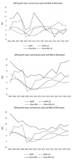 The panels comprise company data for the period of 2005–2019, from various industries. The aspects of the diverse activity domains and the different sizes of the companies are encompassed in the fixed effects of the panel data models. The cross-sectional fixed effects models considered the characteristics of each company and industry and maintained them over time.