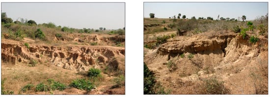 The problems of deforestation and degradation of forested areas stem from large-scale timber harvesting, acquisition of land for agriculture, especially large plantations in the south, farming and grazing in the north of Nigeria, at the expense of natural wooded land. Deforestation, overgrazing, tillage and unsuitable agricultural practices are well-known causes of accelerated soil erosion processes. This is a problem observed globally, including many African regions [5,6]. In sub-Saharan Africa, particularly in the Sahel, a crucial factor in soil degradation is firewood collection and use; over the last several decades, deforestation or exploitation of wood fuel for domestic purposes or other uses have accounted for over 17% [7] of soil degradation in that region.