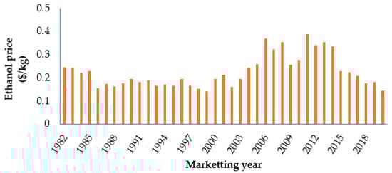 Historic ethanol price in the US market. Data from ref. [].