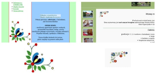 Not so long ago, the backbone of rural tourism marketing in Poland was websites built at the lowest possible cost and hosted on free servers [1]. The fact that the websites were developed by the farms (household members, friends) and were nonprofessional is relevant. Many were unique and considered Polish rural digital heritage [2]. They were most often developed with archaic techniques, floating frames (iframe) or tables. Their creators employed scrolling text in marquee containers, and the 900 px wide viewport was typical of 15˝ CRT monitors [1]. Still, the exceptionality and general design of such websites stemmed mainly from digital folklore elements.