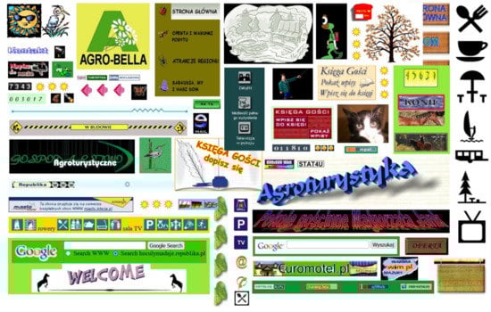 Two groups of special elements were identified among graphics on archaic websites of rural tourism in Poland: pictograms and icons characteristic of Web 1.0 (Figure 4). In most cases, they were links to web directories under a link exchange scheme. The website owner could list it in a web directory free of charge but had to link to the directory in return.