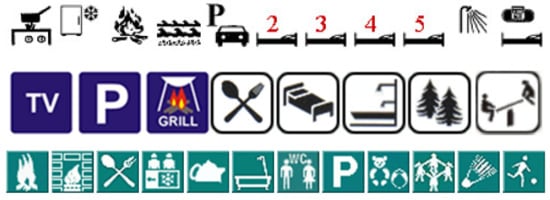 The other element characteristic of archaic websites of rural tourism facilities in Poland is pictograms. They are graphics that inform about details of tourism offered in a universal manner (Figure 5).