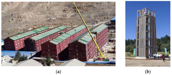 Some recent iconic timber constructions in Chile: (a) Campamento Los Bronces; (b) Peñuelas Experimental Tower.